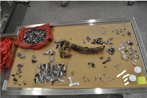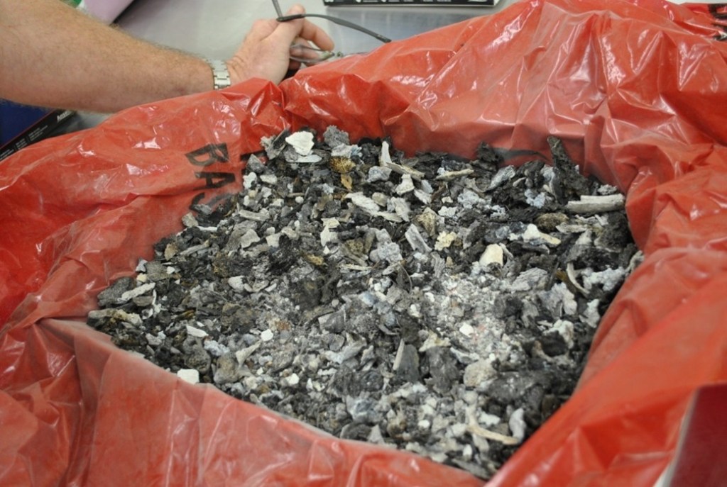“I don’t know if you’re going to be able to do anything, Doc,” the investigator warns. “It’s all burned up. Neither the crime scene team nor the pathologist could make much headway … there’s not much left.” Over the years, I’ve learned that such statements can mean I’ll be dealing with a case of severe decomposition to complete skeletonization, and today, it was the result of a fire — truly, there wasn’t much left. A banker’s box lined with a red biohazard bag contained fourteen pounds of incinerated human remains, among other debris from a car fire. It also seems I would be at least the third person to examine these remains.
