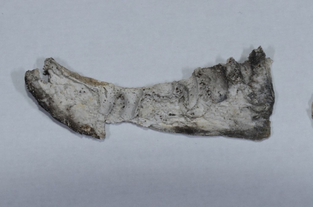 Our resident anthropologist had already begun processing what was left by the time I arrived. At the center of the stainless-steel table in the morgue was the most identifiable part: a pelvis with some lumbar vertebrae still attached. If this is all that remained, the investigator was correct — there’s not much left for positive identification, especially using dental records. Surrounding the pelvis, the anthropologist had started sorting the larger, more identifiable fragments into categories such as “long bones,” “flat bones,” and “dental.” The dental remains she had found were scant — fragments of molars, a bit of maxillary alveolar bone, and a buccal plate of the lower left mandible.